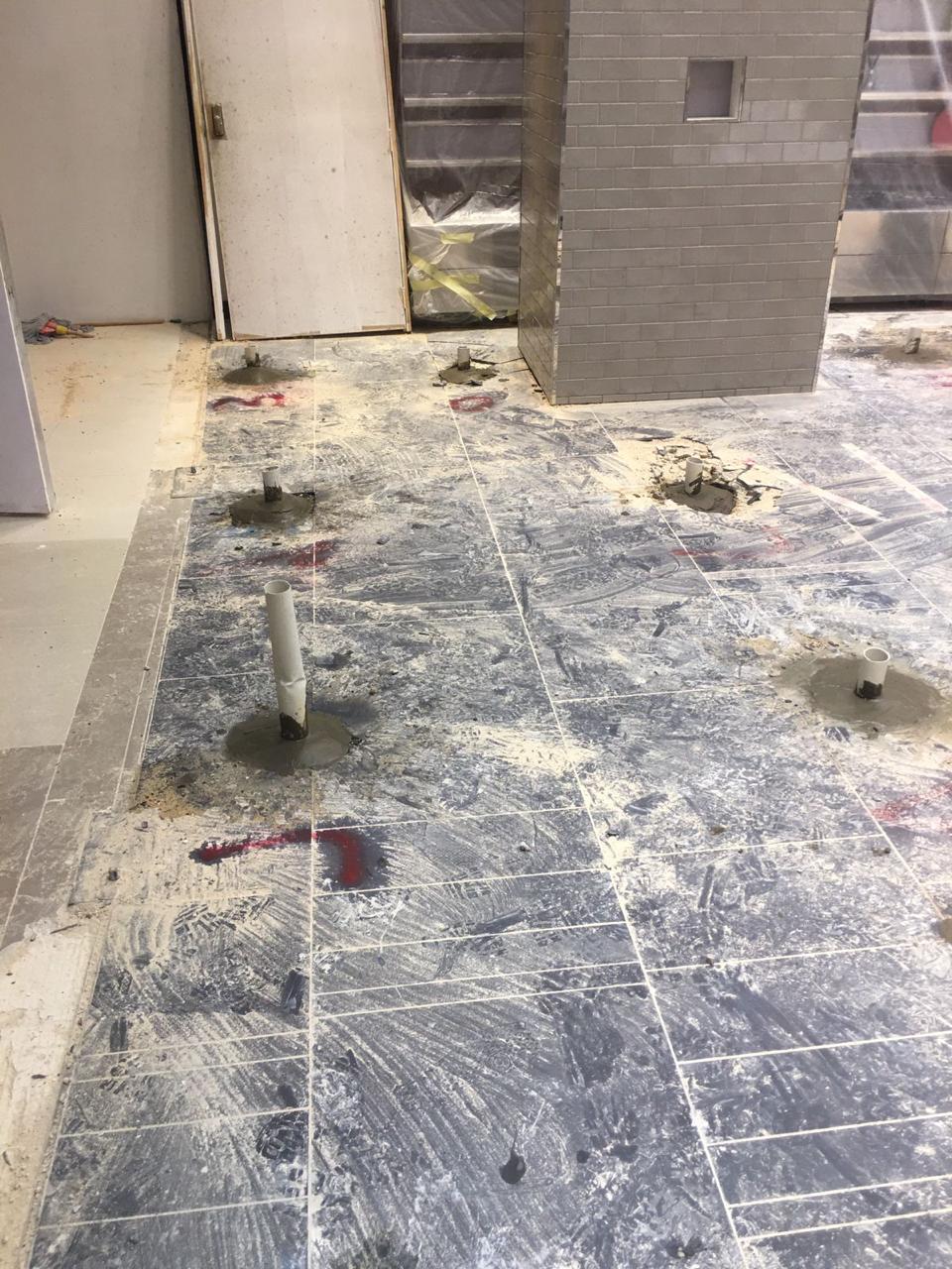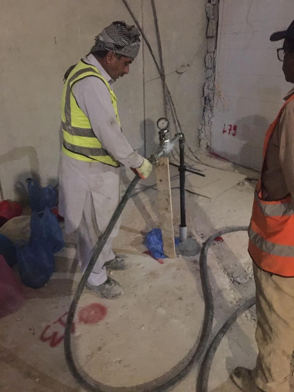 تم حقن المبنى اسفل الاساسات لضمان استقرار المبنى وايقاف الهبوطاتتم تنفيذ الحقن على مراحل متتابعة وفق شبكة محددة مسبقًا، مع مراقبة كميات الحقن وضغوط الضخ بشكل مستمر لضمان التوزيع المنتظم وتحقيق نتائج متجانسة