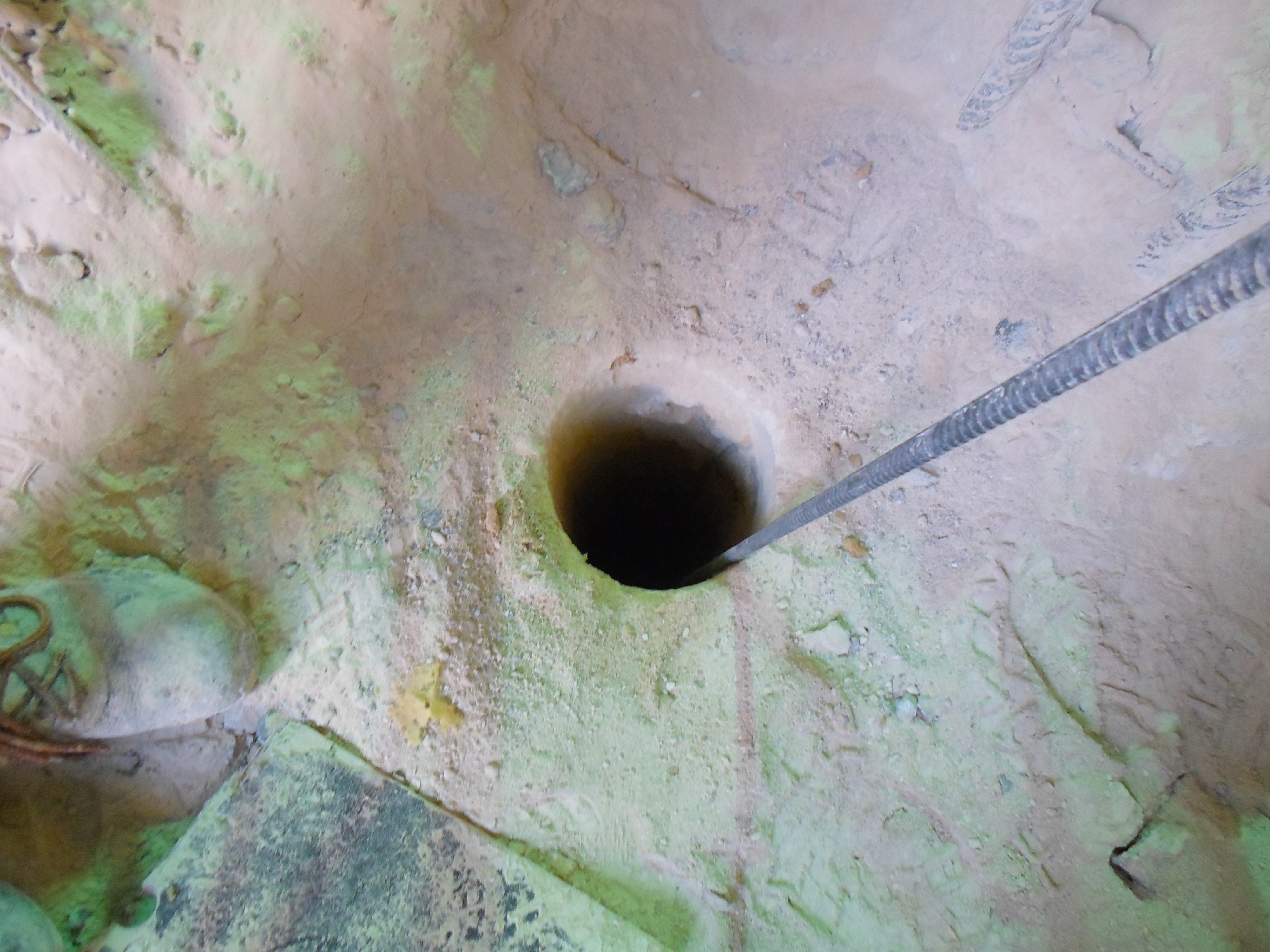 تم تنفيذ أعمال الحفر باستخدام الشنيور بعمق 10 أمتار وبقطر 8 بوصة، ثم تم تنظيف الثقوب باستخدام ضغط الهواء.