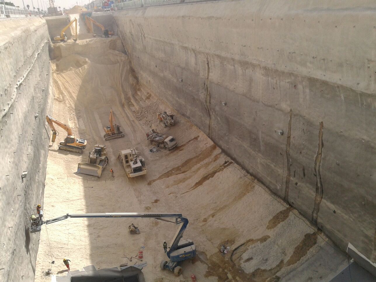 تم تنفيذ أعمال تدعيم حفرية مترو الرياض للمحطة الرئيسية بعمق 32 مترًا باستخدام نظام الشوت كريت المحيطة مدعومة بعدة صفوف من الأنكورات (Ground Anchors) لضمان استقرار الجدران الجانبية أثناء مراحل الحفر المتتابعة.