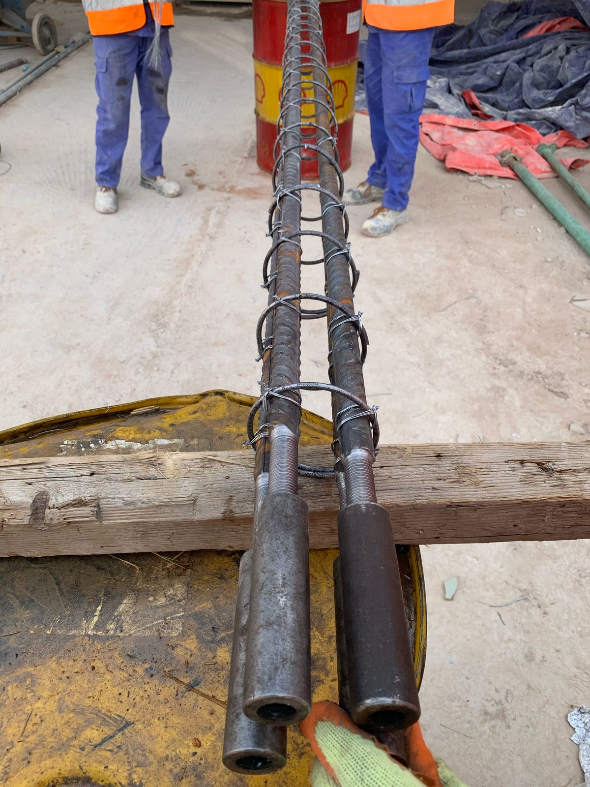 وتسليح الوتد بسيخ حديد وبيتم صب الوتد بصبه جروات وتركيب بليتة حديد ع الوتد وذلك لتوفير أساس ثابت للمبني وزياده مقاومته للهبوط