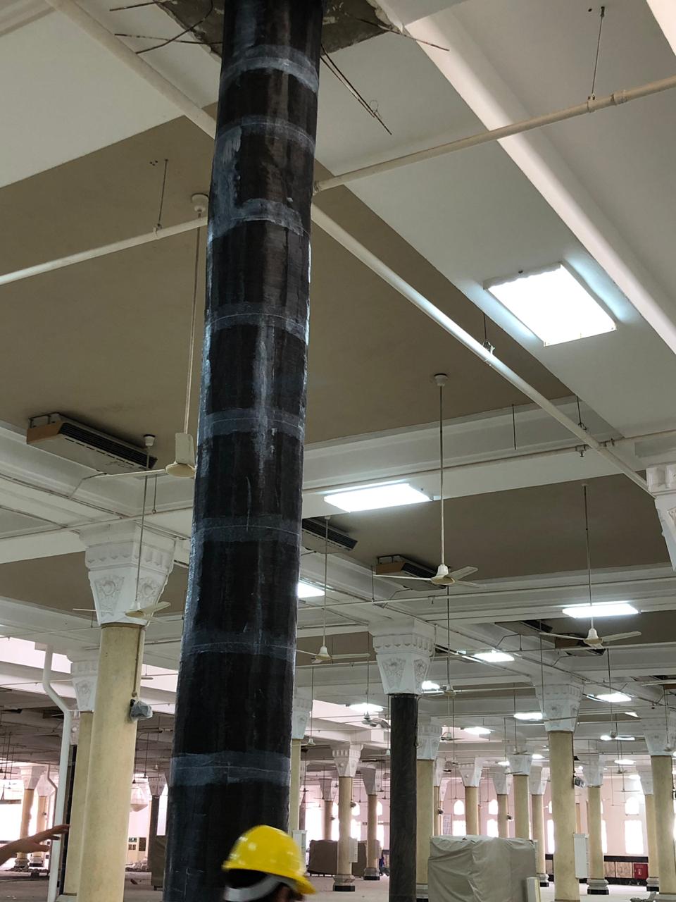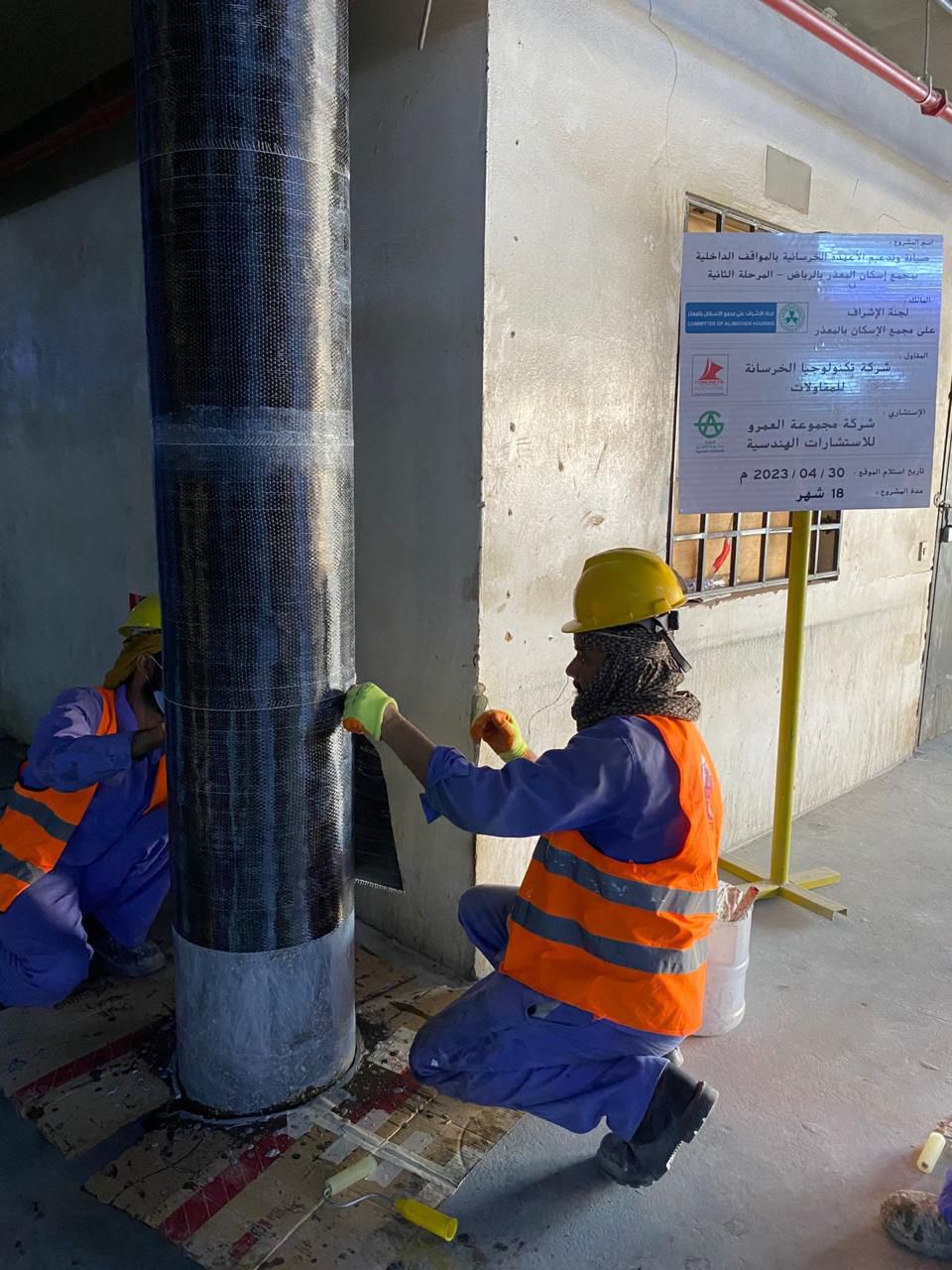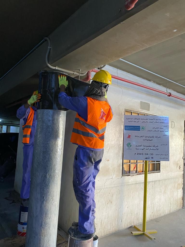 يتم التدعيم باستخدام الكاربون فايبر (ألياف الكربون) هو تقنية تُستخدم لتعزيز وتقوية الهياكل الخرسانية ويتميز هذا النظام بفعاليته في زيادة قدرة التحمل للهياكل بدون الحاجة إلى تكبير القطاعات الخرسانية أو تقليل المساحات الداخلية حيث يتميز الكاربون فايبر بخفة الوزن وقوة الشد العالية