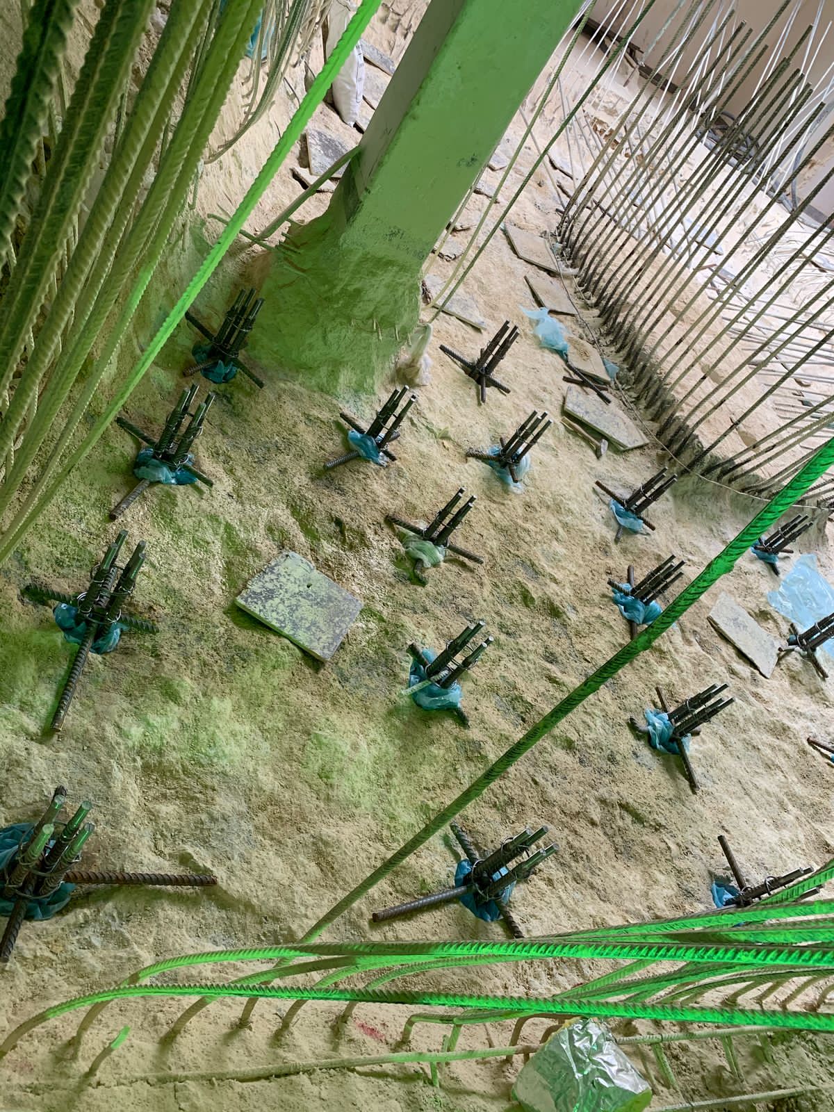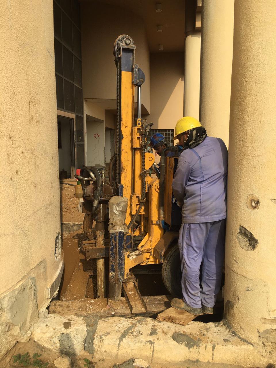 بعض الأحيان يتم تأسيس قواعد المنشآت على تربة غير صالحة للتأسيس (دفــان) أو تربه تأثرت نتيجة وجود تسريب للميـاه ، لذلك لابد من عملية تدعيم للمبنى وإيقاف الهبوط . وتتم هذه العملية بعمل أوتاد خرسانية مسلحة لنقل حمولات المبنى من القواعـد إلى طبقات التربة الصالحة للتأسيس، تخترق هذه الأوتاد أساسات المبنى حتى الوصول للطبقة الصالحـة للتأسيس. وتصبح القواعد عندها بمثابة قبعة لهذه الأوتاد.