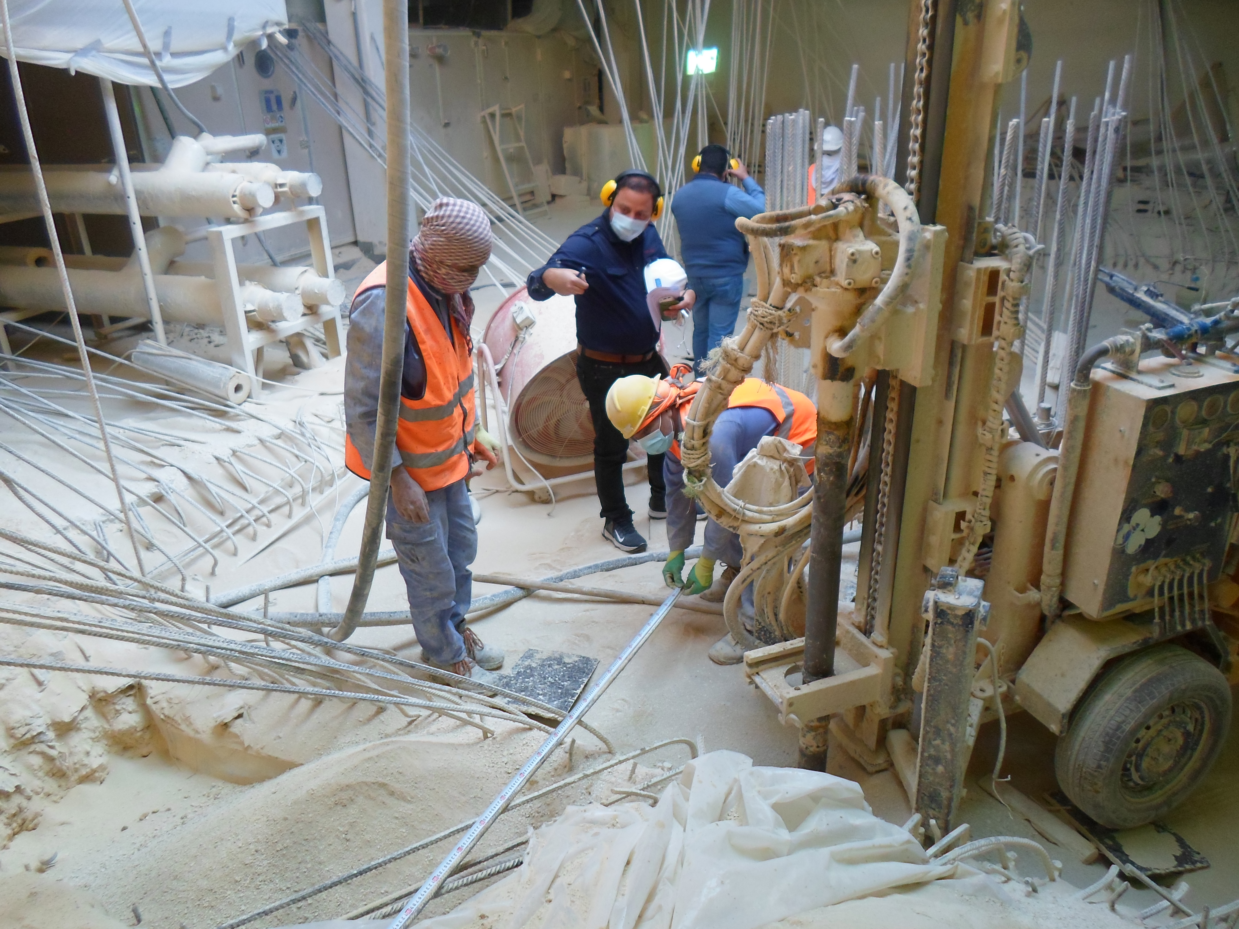 After that, steel cages in the form of piles (approximately 3 meters long) were prepared. These cages were connected together to maintain the strength and continuity of the reinforcement using couplers.