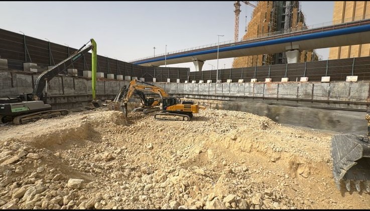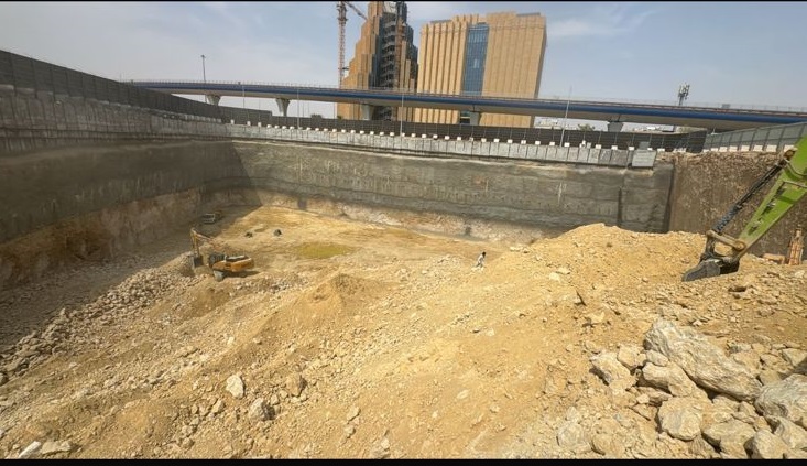 Due to the weak soil conditions at the project located on King Fahd Road, and with excavation depths reaching 24 meters, it was essential to adopt a comprehensive shoring system to ensure wall stability and minimize the risk of collapses during all execution phases.